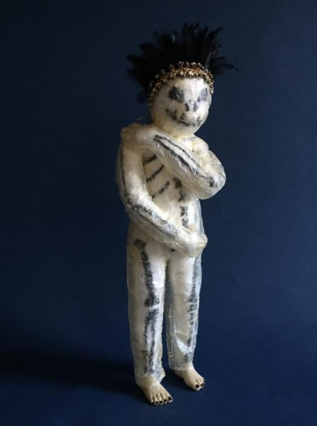 Linde Ivimey (b. 1965) is well known for her use of eclectic materials, often incorporating bone, tooth and skin, primarily that of bird, sheep and fish, into large scale statues and small detailed figures. Her practice draws upon various skills including welding, cooking, mould making, taxidermy, weaving, wood carving and sewing to create figurative works with a strong biographic basis and inspired by her specific research areas - travel, twins, hypnosis, hagiography, childhood, animals and the human condition.